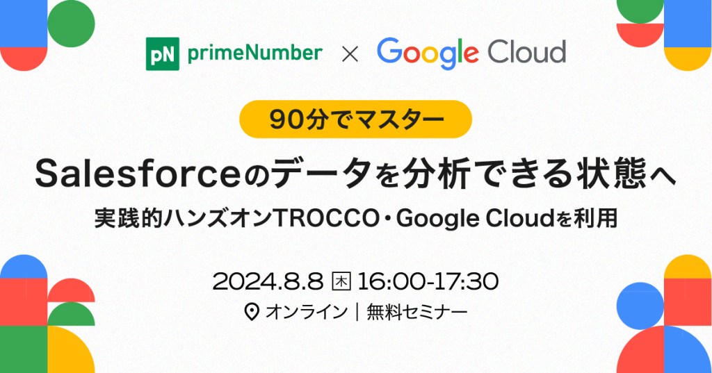 ビジネス現場のデジタル化が急速に進み、それに伴い社内のデータも増え続けています。今後は、企業レベルでのデータ活用度の差が、競争力に直結します。Salesforceは営業管理ツールとして多種多様な機能を有しています。今回はそのデータをより活用し営業管理を柔軟に行うための方法をTROCCO®、BigQueryを実際に用いてハンズオンを通して実践いただきます。